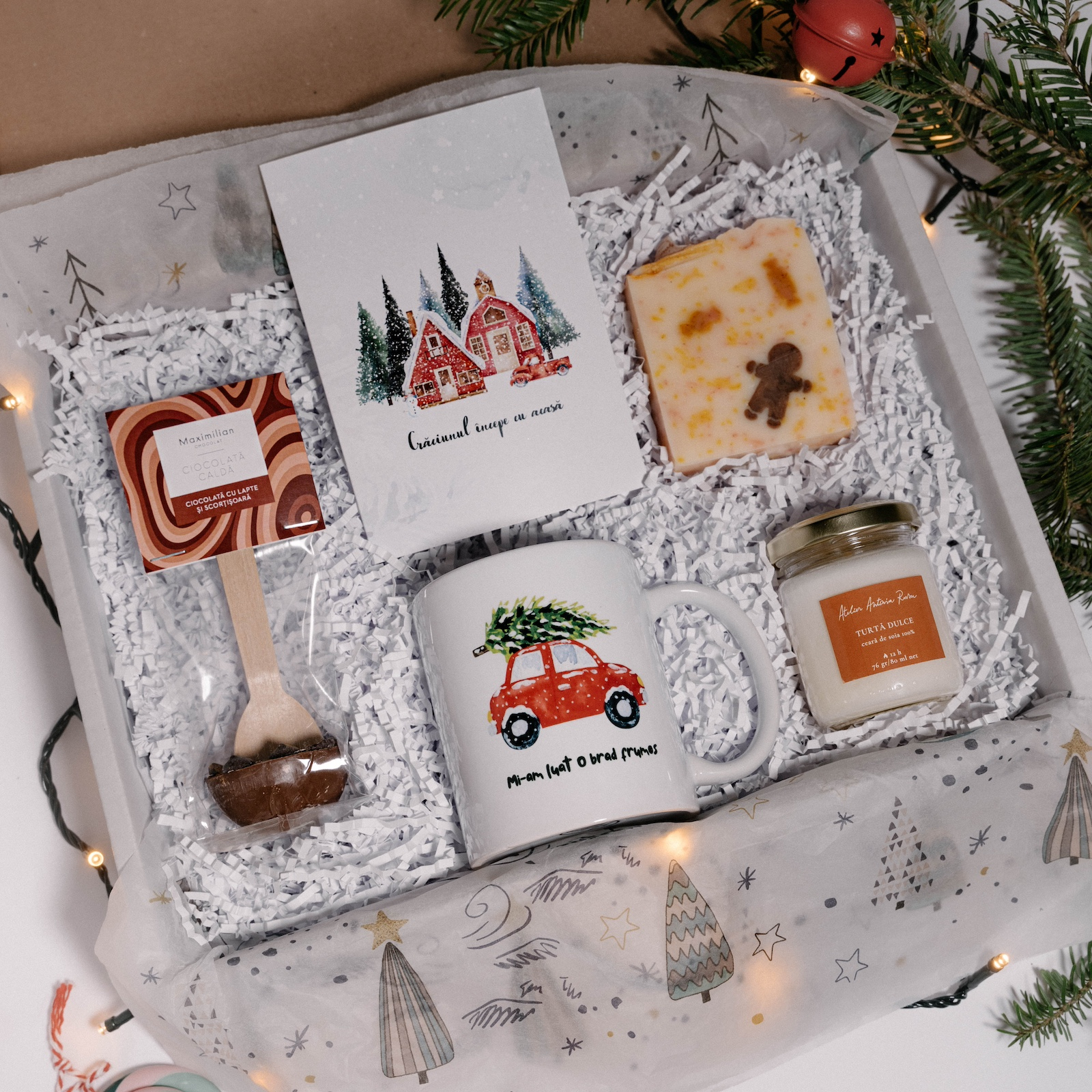 Acest cadou reprezintă o invitație perfectă la un moment de răsfăț și relaxare, fiind completat de o cană festivă și o lumânare parfumată. Este alegerea ideală pentru a oferi confort și bucurie de sărbătoare unei persoane dragi.