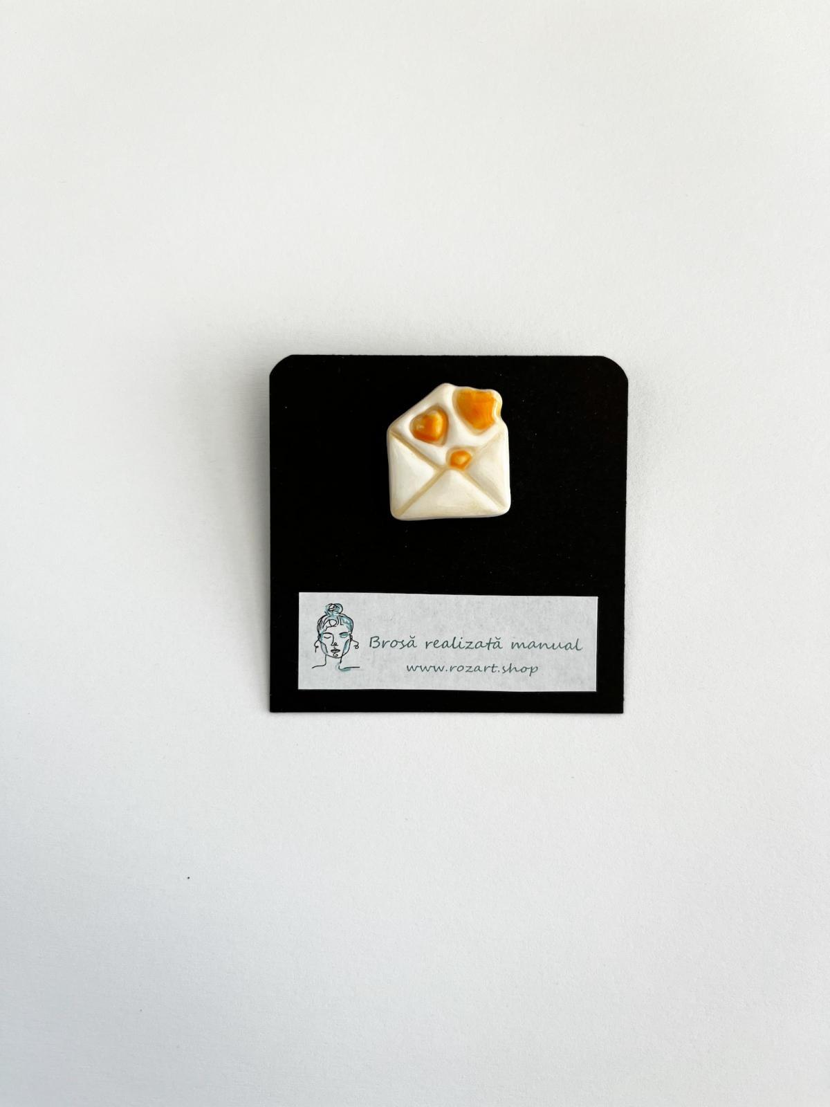 Broșă din ceramică modelată manual, cu pin cu platou - 1 cm